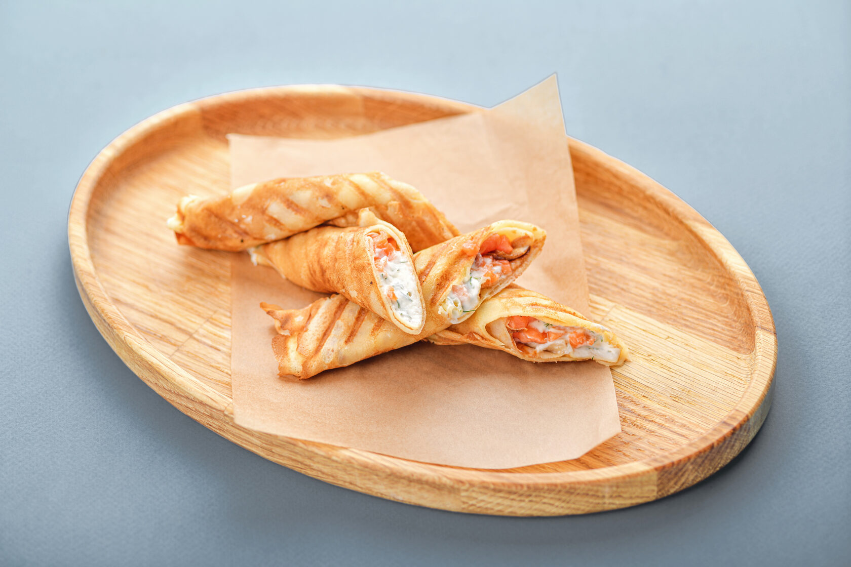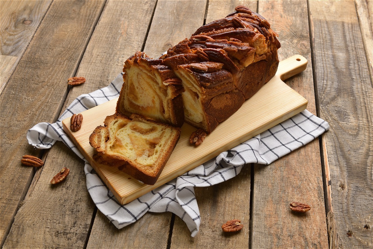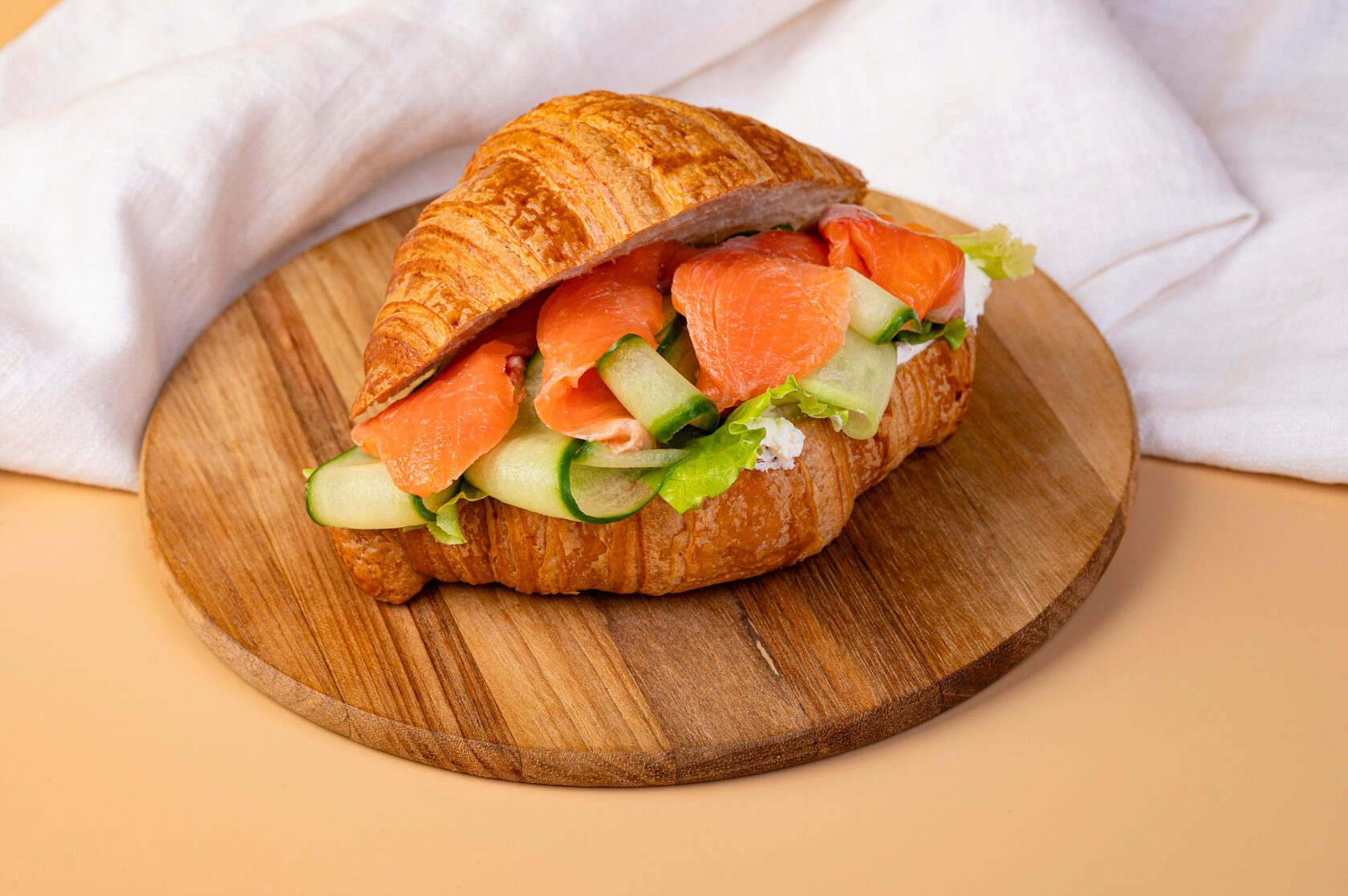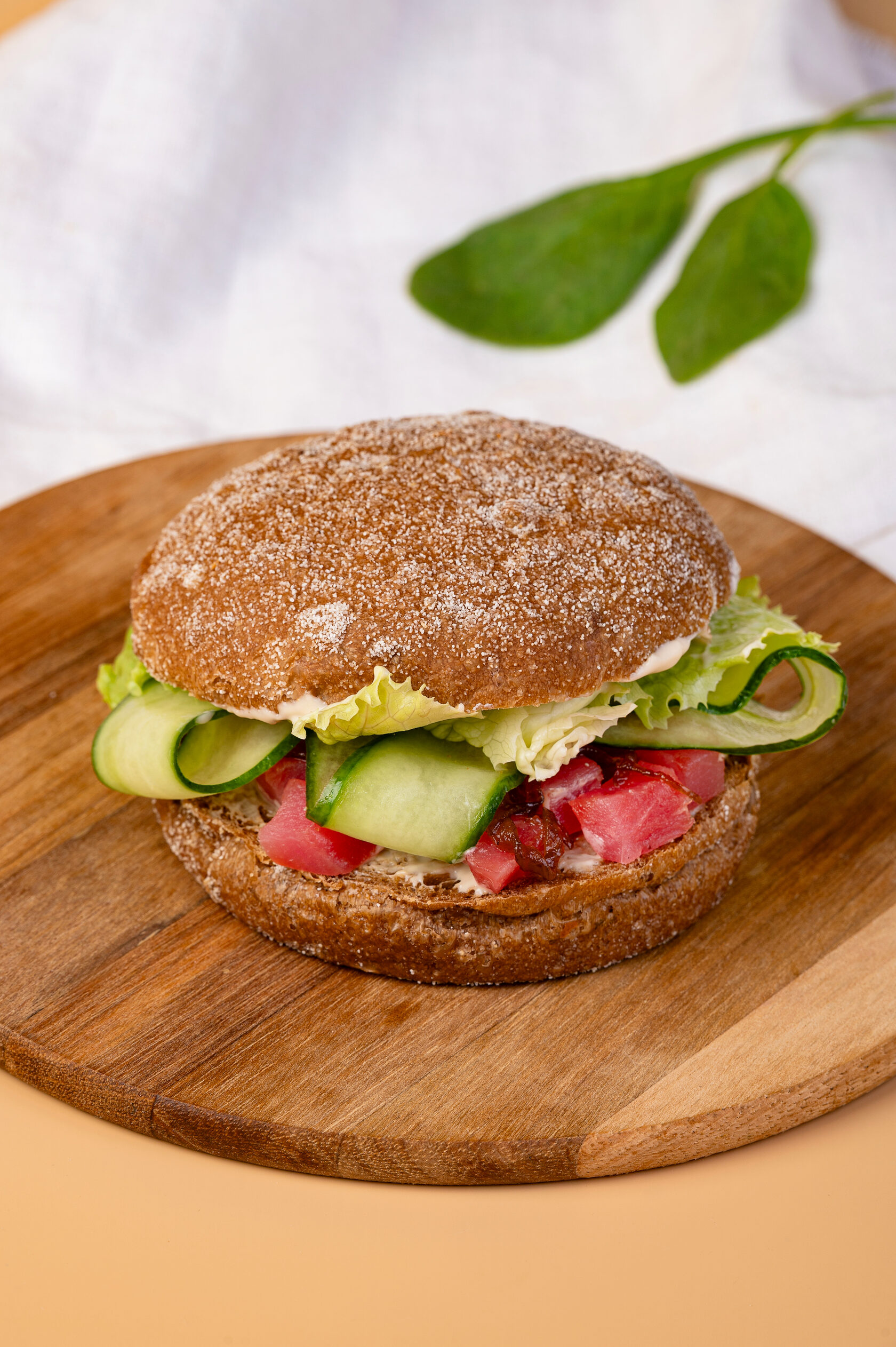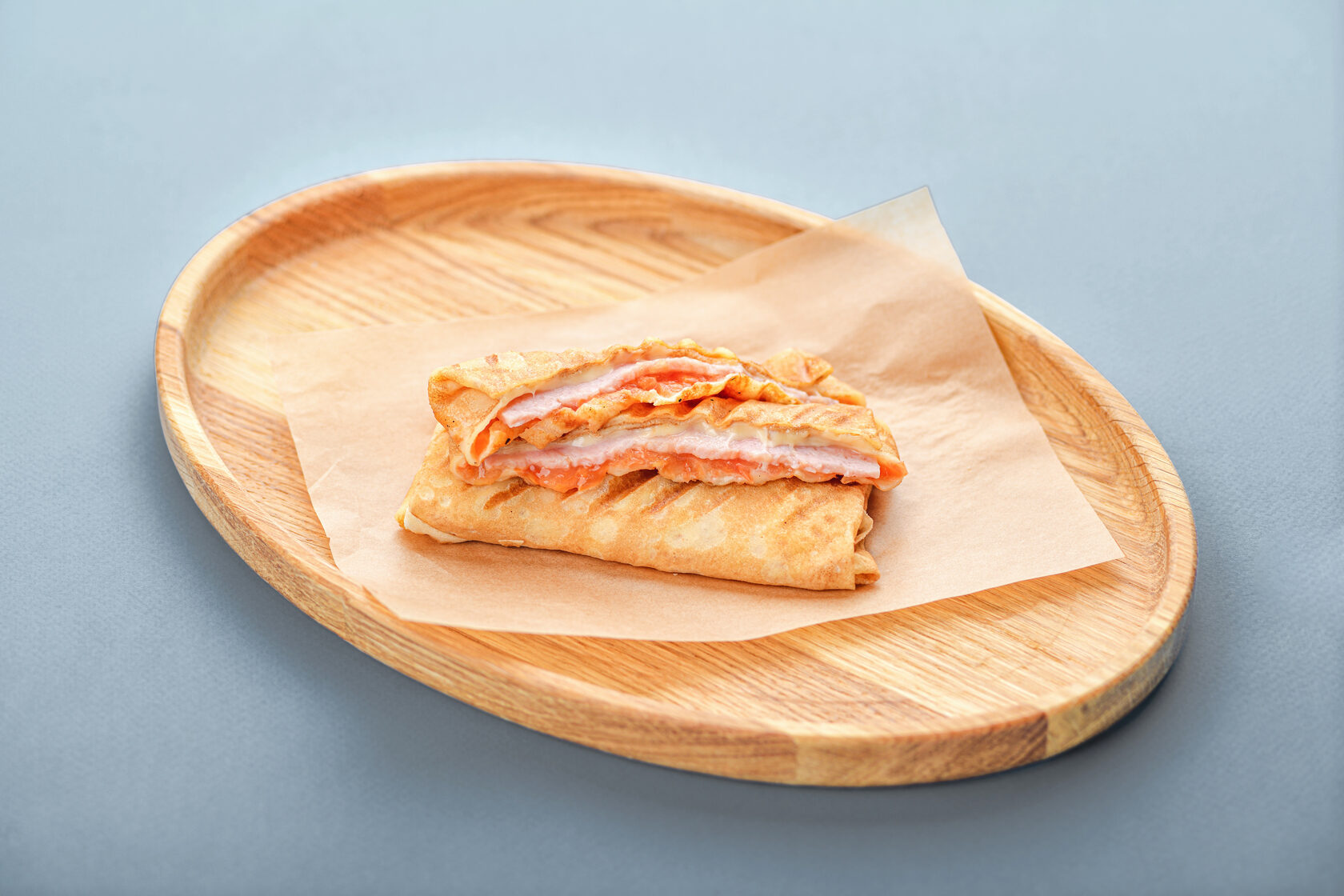 Гастрономическая булочка — насыщенное сочетание сыра Чеддер, моцареллы и окорока с соусами песто и бешамель, в сопровождении вяленых томатов и золотистого жареного лука.