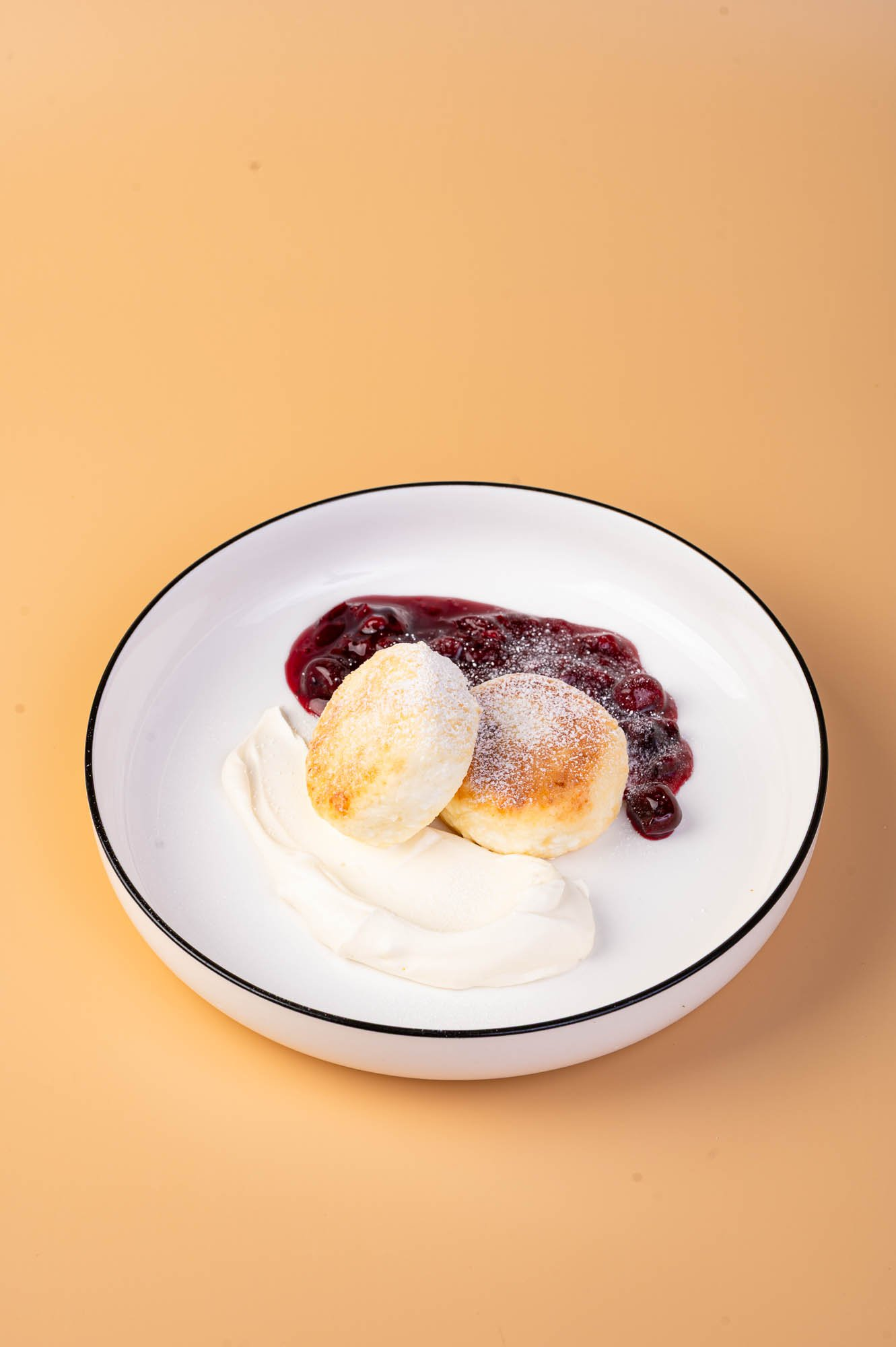 Наш фирменный топовый завтрак из нежного творога. Обжарены до золотистой корочки с взбитой лимонной сметены и соуса на Ваш выбор: пряный вешневый соус, кокосовая сгущенка, крем лайм-кокос