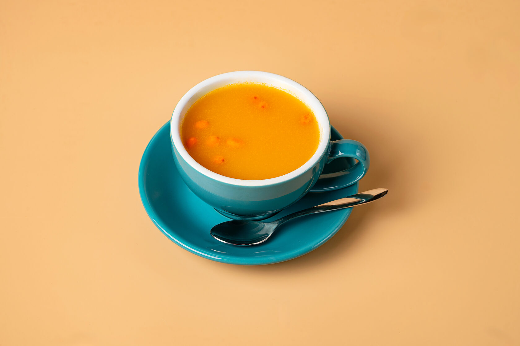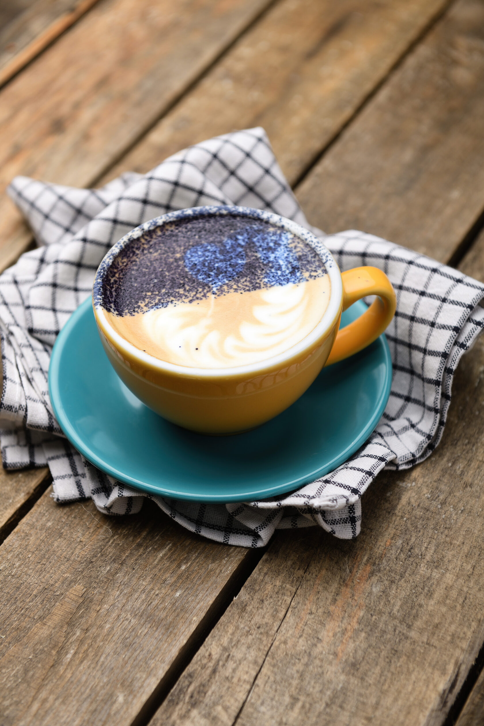 Молочно-ванильный напиток с ярким голубым цветом и сливочным вкусом. Готовится на основе сублимированного синего чая «Анчан» (цветки Клитории Тройчатой), ванильного сиропа и молока на выбор гостя.