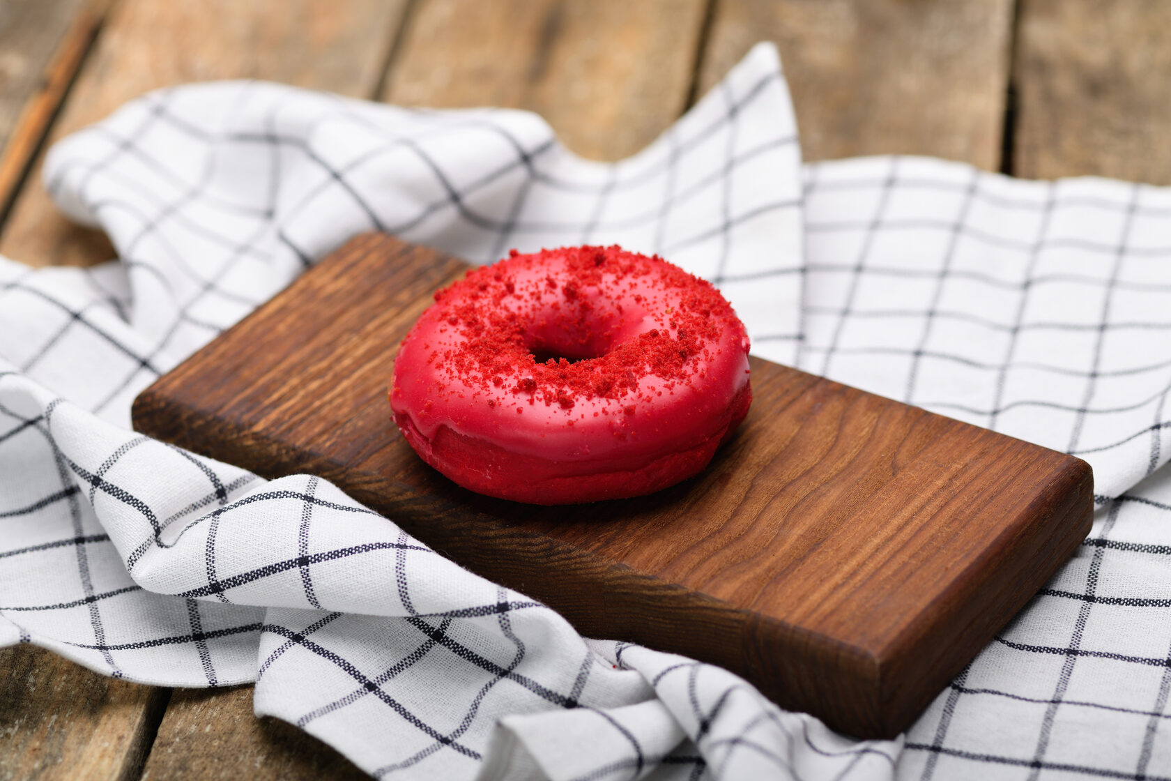 Вес: 97 г Описание: Фирменный донат с ванильным кремом внутри, украшенный малиновой помадкой. Состав: Глазурь со вкусом малины, бисквитная крошка, дрожжевое тесто, сыр маскарпоне, крем сливочный. Б/Ж/У/ккал/кДж: 3,1/9,68/57,02/327,58/1 370,59