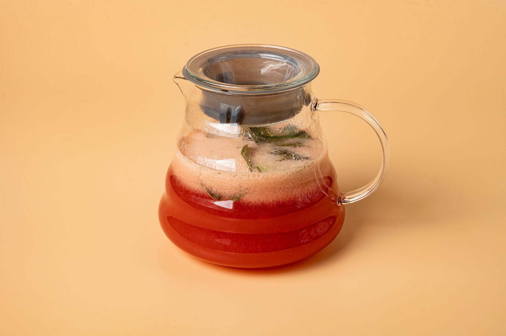 Экзотический лимонад с ярким вкусом тропических фруктов и травы шиссо. Хорошо освежает и подходит для любителей ярких и кислотных напитков.