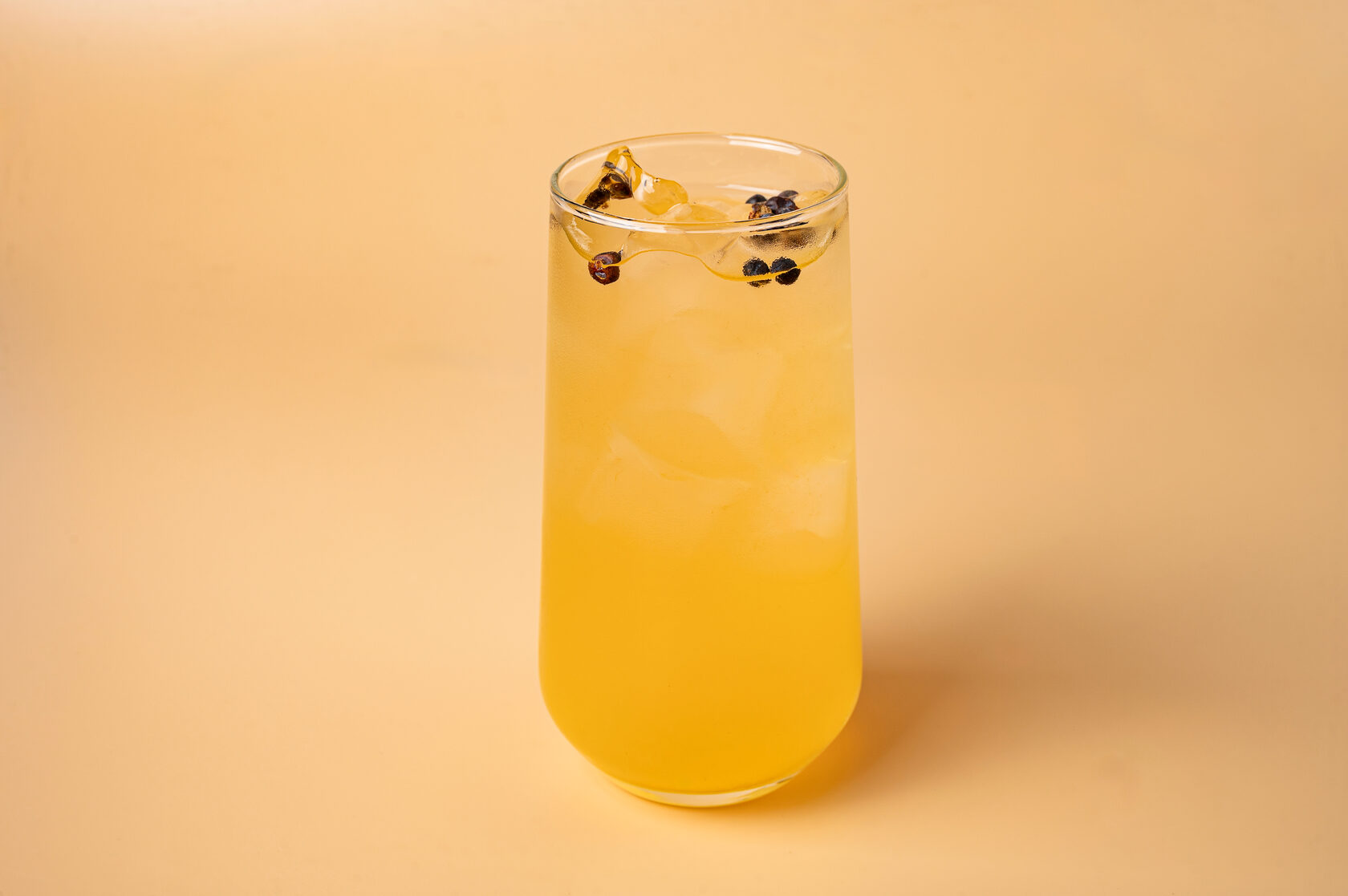 Прохладный освежающий напиток с терпким и пряным привкусом на основе шота эспрессо и тоника / Прохладный освежающий напиток с терпким и пряным привкусом на основе маття и тоника.