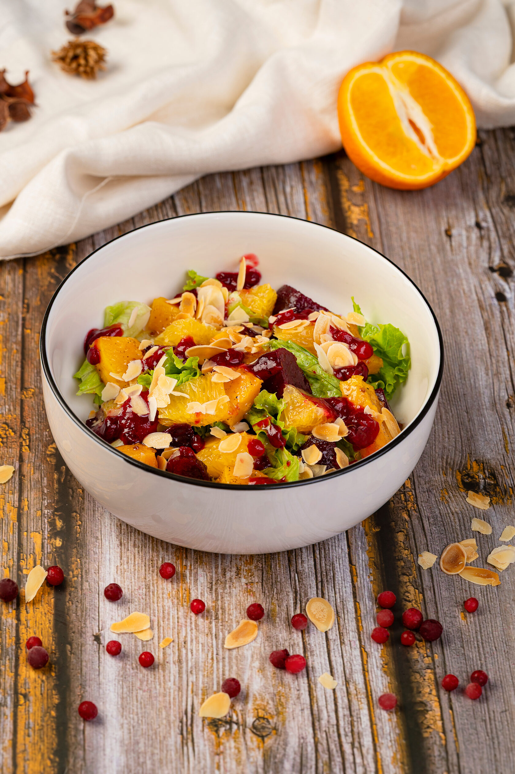 Салат с маринованной свеклой, печеной тыквой и брусникой
