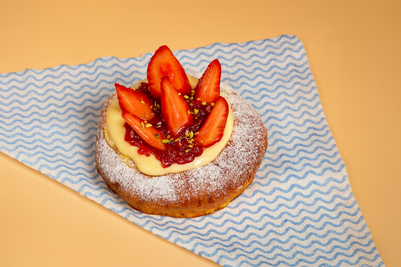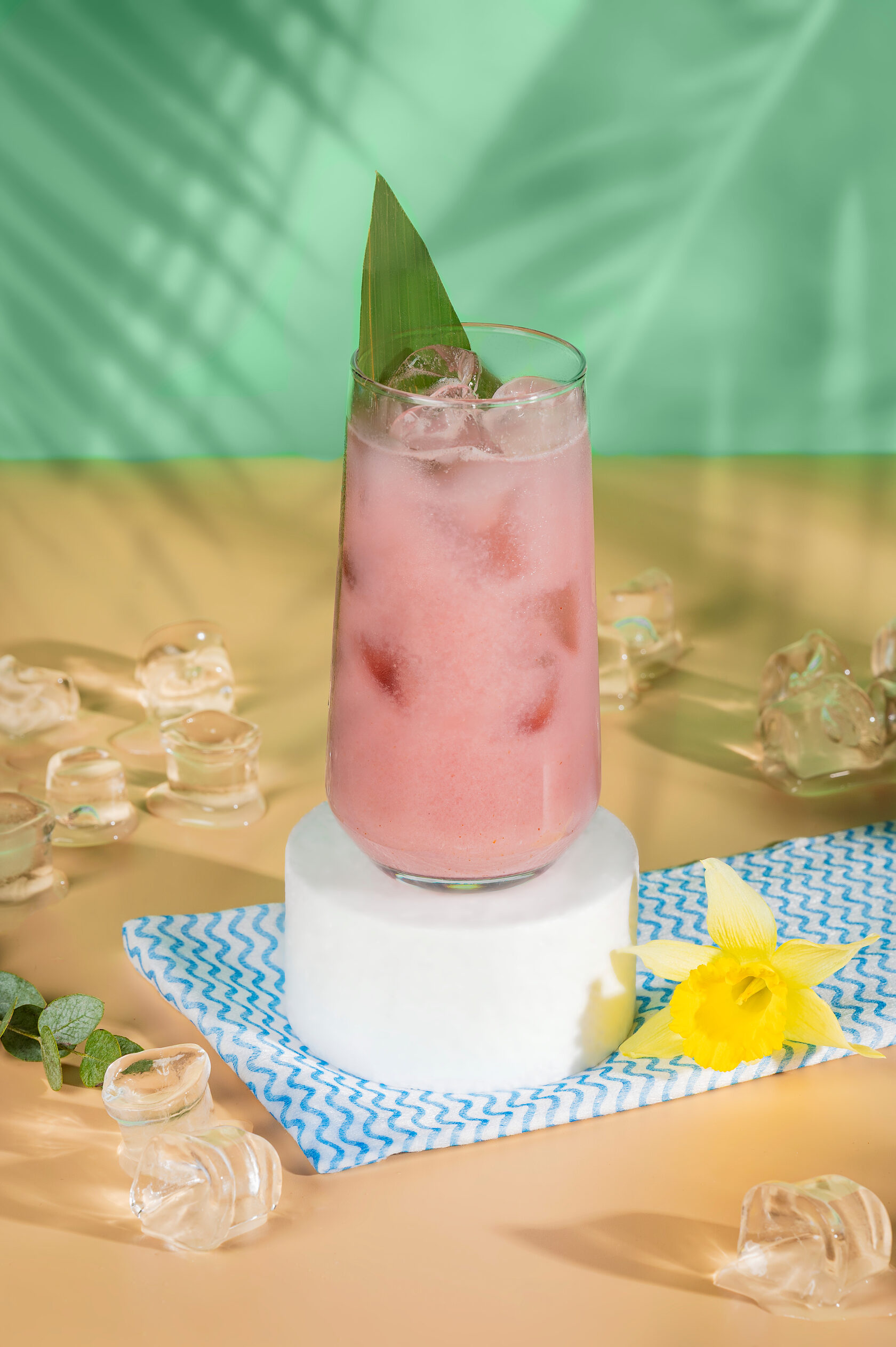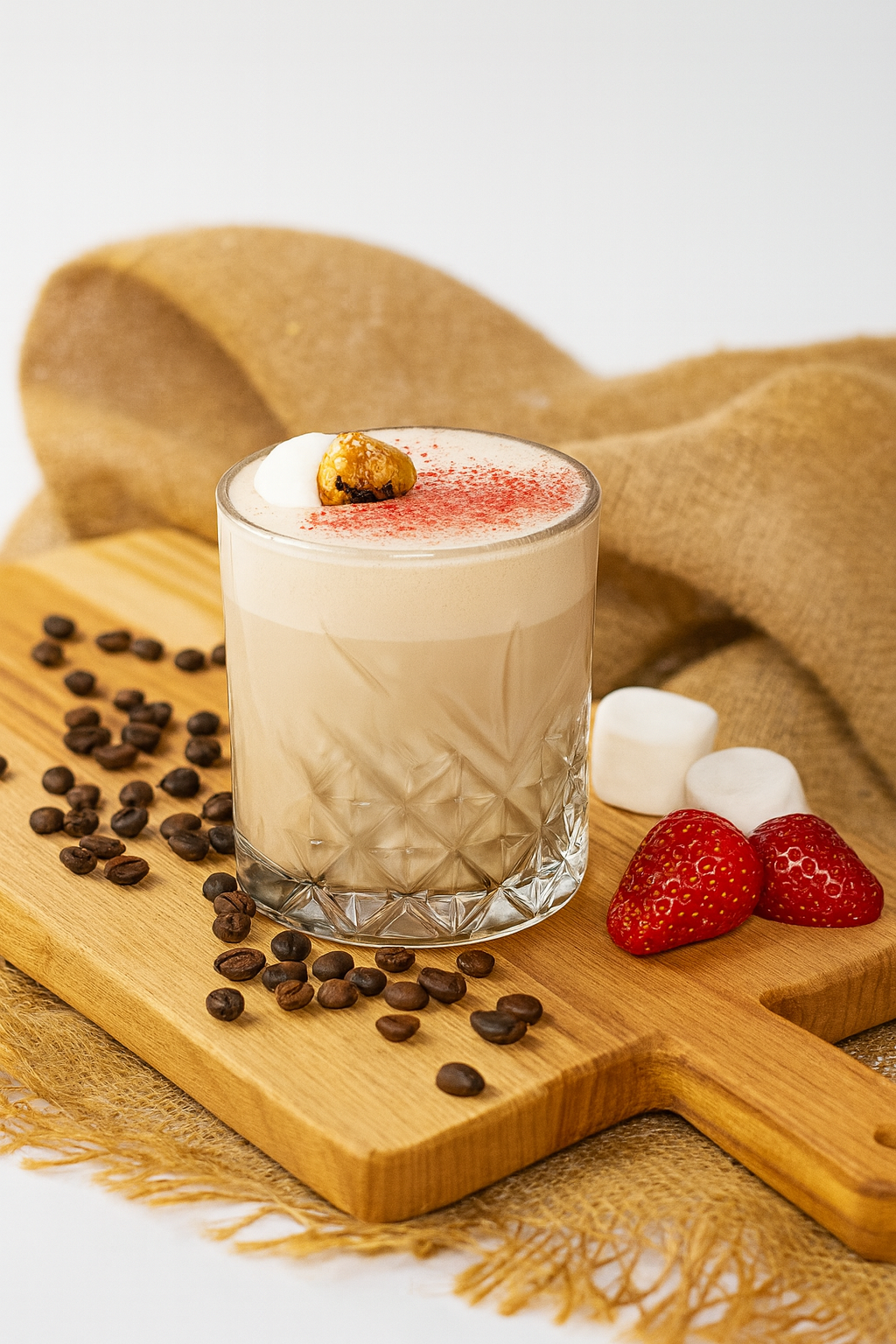 Латте с сиропом на основе клубники, пюре личи и свежего апельсина. Напиток имеет цитрусовые нотки и украшается маршмеллоу.