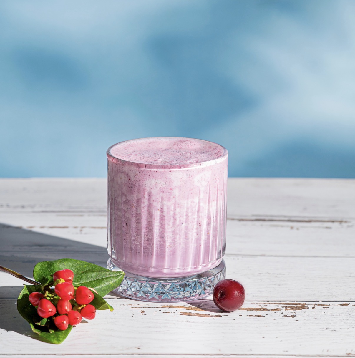 Описание: Питательный протеиновый смузи на основе протеинового молока, вишни, смородины и клюквы. Яркий освежающий смузи с насыщенным вкусом красных ягод.