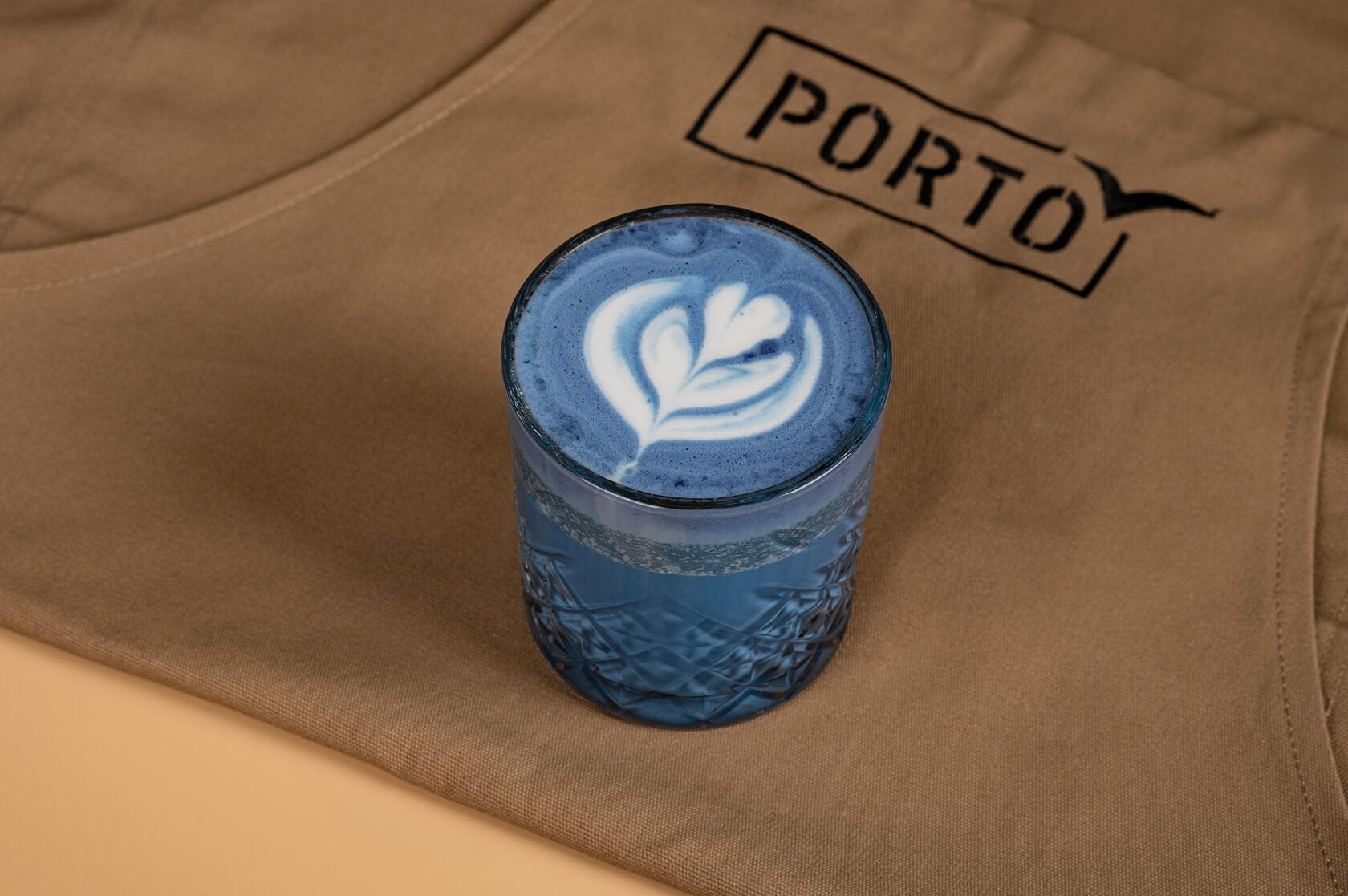 Молочно-ванильный напиток с ярким голубым цветом и сливочным вкусом. Готовится на основе сублимированного синего чая «Анчан» (цветки Клитории Тройчатой), ванильного сиропа и молока на выбор гостя.