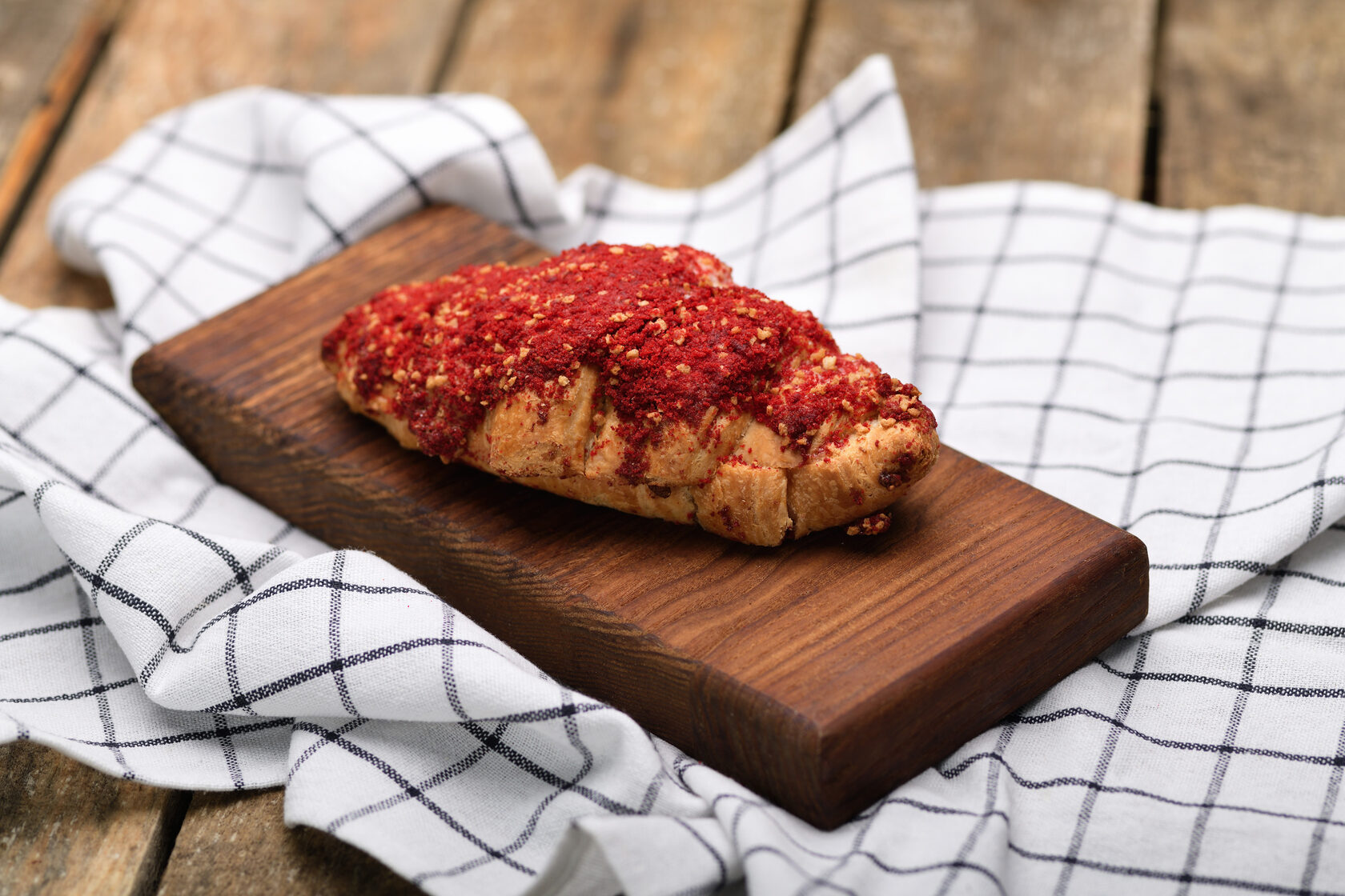 Вес: 180 г Описание: Благодаря особому способу запекания корочка круассана становится более хрустящей, а начинка с клубникой сочной. Можно подать теплым. Состав: Круассан из слоёного теста, сахарный сироп, масло сливочное, сахар, яйцо, ром Бакарди, мука пшеничная, миндаль молотый, клубника мороженая, белый шоколад, сливки 33%, крошка бисквитная красная, крошка вафельная. Б/Ж/У/ккал/кДж: 3,91/16,52/37,17/313,03/1 309,74