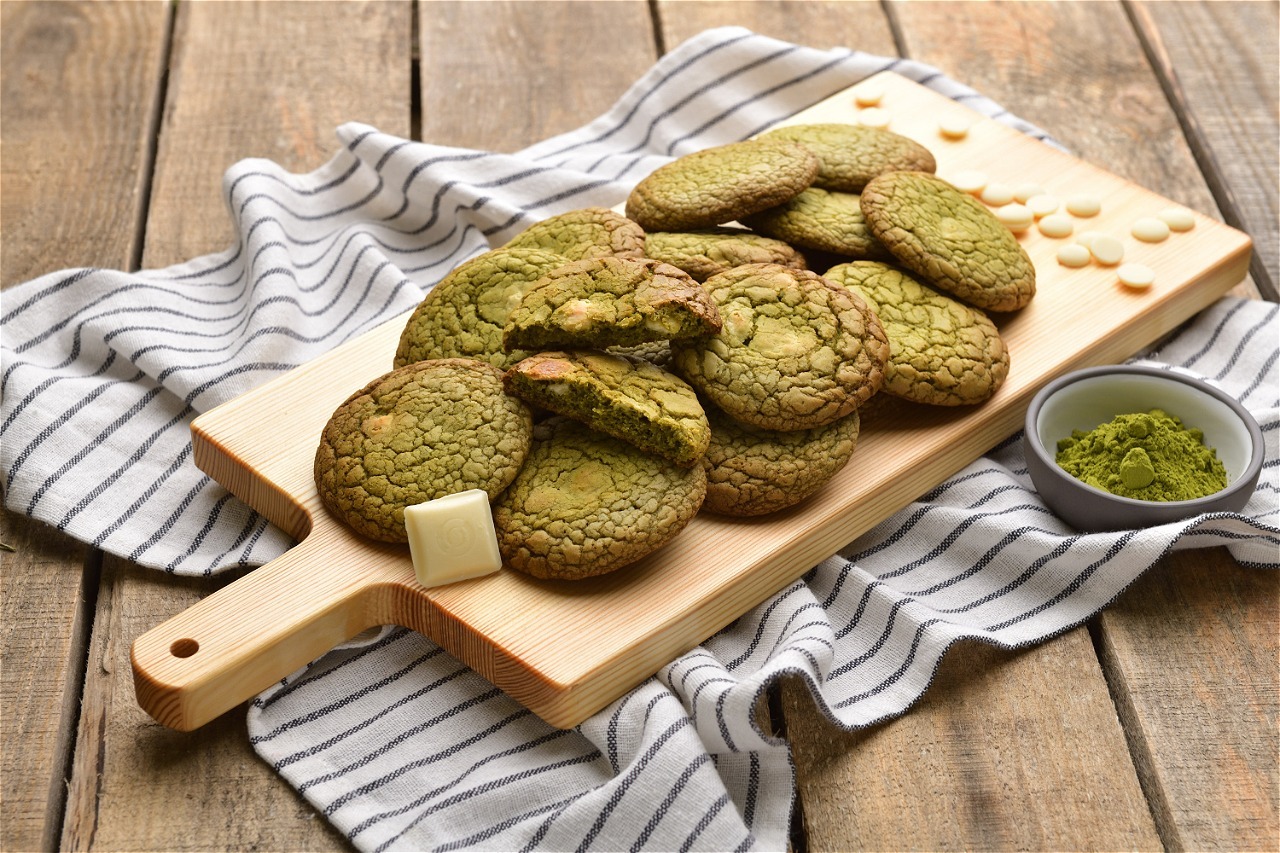Вес: 28 г Описание: Нежное и хрустящее печенье с матчей с добавлением белого шоколада. Состав: Масло сливочное 82,5%, меланж яйцо, сахар тростниковый, мука в/с, чай зеленый матча, бакпульвер, шоколад натуральный белый Белколад. Б/Ж/У/ккал/кДж: 5,66/18,31/57,54/417,57/1 747,12