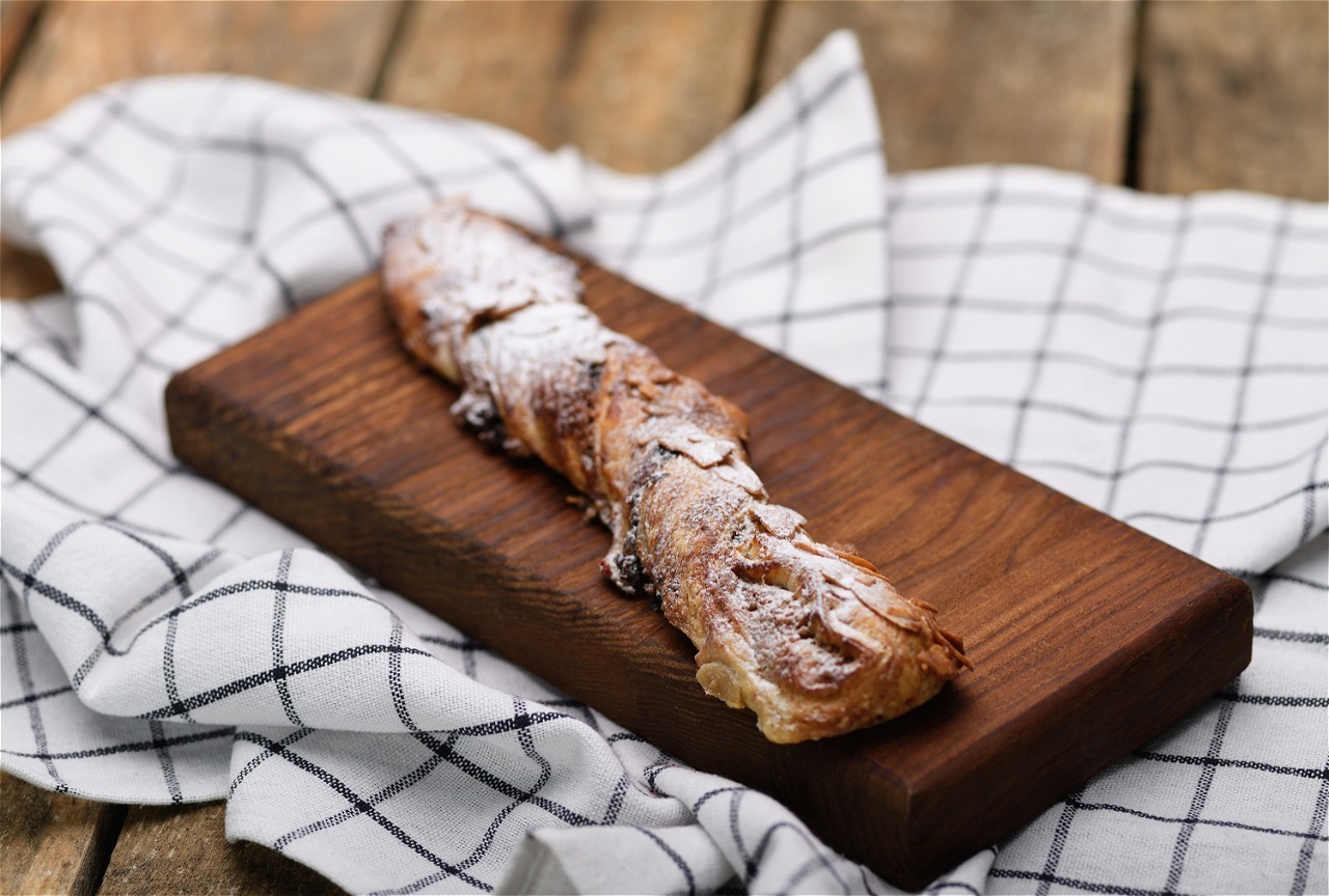 Вес: 161 г Описание: Выпечка из слоеного дрожжевого теста с медом и цитрусовой цедрой. Состав: Мука пшеничная, сахар, масло сливочное, дрожжи, мед, лимон, цедра лайма, пшеничная клейковина. Б/Ж/У/ккал/кДж: 3,83/15,05/53,03/363,05/1 519